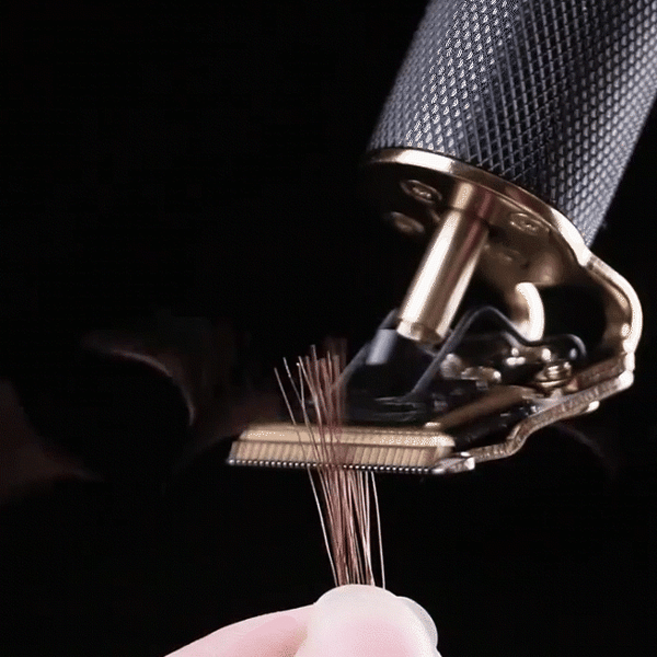 The Gold Knight close-cutting trimmers are a must-have for detail work on hair, beards, and mustaches.