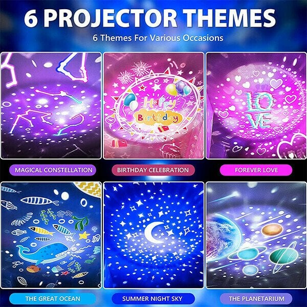 💙6 interchangeable projector films including:The Sky Light, Galaxy, Ocean, Planetarium, Happy Birthday, Love, and Constellations.