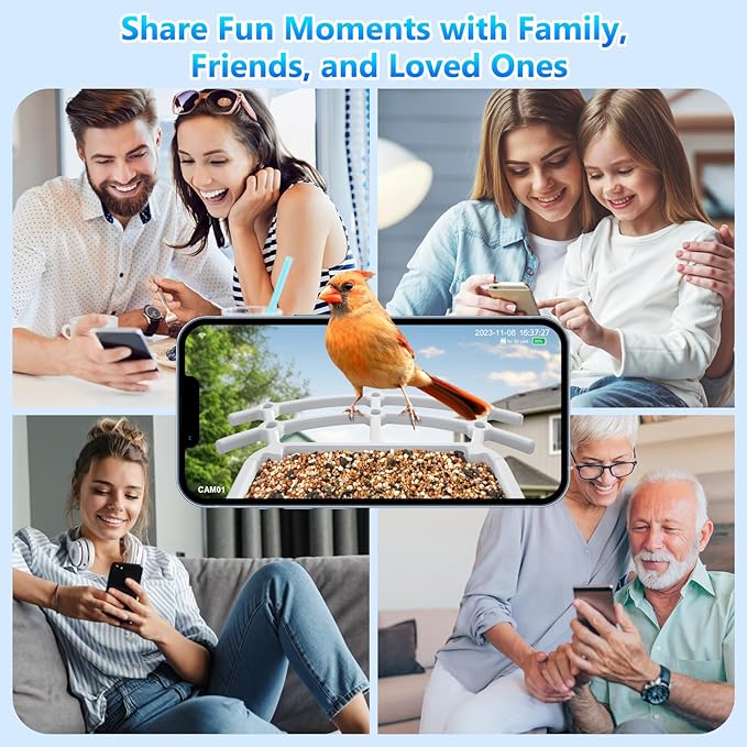 The built-in camera automatically takes pictures of birds that stop by. Even if you miss a rare bird, your smart bird feeder will send you a postcard. The app also provides exciting hints for attracting new species. Browse the appās tips and tricks to learn what kind of bird food will attract specific species.
